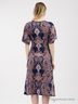 Платье приталенного покроя выполнено из плотного трикотажа. Изделие с короткими рукавами и глубоким вырезом декольте. Отличный вариант на каждый день.