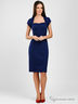 Модное платье приталенного силуэта с оригинальный вырезом горловины и коротким рукавом выполнено из плотного трикотажного материала. Изделие декорировано вставками в тон. Отличный вариант для создания повседневного образа.
