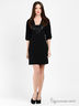 Стильное платье прилегающего силуэта выполнено из бифлекса. Фигурный вырез горловины декорирован лаковой вставкой со стразами, короткий цельнокроеный рукав. Эффектное дополнение к вечернему гардеробу!