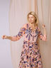 Стильное платье ArtRibbon с актуальным в этом сезоне принтом станет фаворитом Вашего весеннего гардероба. Платье прилегающего силуэта, с центральной застежкой не доходящей до низа изделия на пуговицах. Рукав втачного покроя с притачной манжетой. Хорошо подчеркивает линию талии декоративная баска.