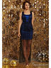 Нарядное, вечернее платье, которое выполнено на сочетании двух тканей. Нижнее платье прилегающего силуэта выполнено из ткани хлопок-сатин с атласным блеском. Верх выполнен из тонкого кружева. Модель на широких бретелях с округлым вырезом горловины.