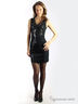 Эффектное платье-футляр приталенного покроя из гладкой матовой ткани. Глубокий V-образный вырез горловины. Платье декорировано оригинальной глянцевой вставкой.