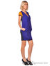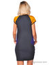 Платье прямого силуэта с коротким рукавом и V-образным вырезом. Модель сочетает в себе вставки трех контрастных цветов.