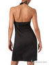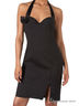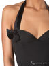 Платье изготовлено из эластичного хлопка и длиной выше колена, с разрезом на левой стороне. Жесткая чашка в форме бюстгальтера Corbeille. Широкие бретели из плиссированной ткани завязываются на шее. Крупный плиссированный бант располагается вначале правой бретели. Платье спереди немного присборено для лучшей посадки по фигуре.