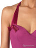 Платье изготовлено из эластичного хлопка и длиной выше колена, с разрезом на левой стороне. Жесткая чашка в форме бюстгальтера Corbeille. Широкие бретели из плиссированной ткани завязываются на шее. Крупный плиссированный бант располагается вначале правой бретели. Платье спереди немного присборено для лучшей посадки по фигуре.