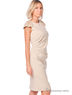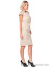 Облегающее фигуру платье с разрезом сзади станет украшением как делового, так и вечернего гардероба благодаря съемным декоративным подплечникам с металлической отделкой, придающим изделию актуальный и нарядный вид.