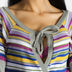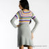 Чудесное платье из трикотажа средней плотности для создания нового яркого образа! Отрезной лиф платья выполнен расцветкой в яркую полоску. Вырез горловины округлый, завязывается на завязки. Длинный прямой рукав-реглан, расцветка имитирует двойной рукав: короткий и длинный. Линия талии слегка завышена, по низу лифа выполнена декоративная завязка. Полотнище юбки слегка расклешенное, выполнено из серого трикотажа, подчеркивает линию талии. Несомненно это эффектное платье выделит Вас из толпы. Экспериментируйте с яркими решениями нового летнего сезона от итальянского бренда Bambolita!