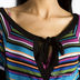 Чудесное платье из трикотажа средней плотности для создания нового яркого образа! Отрезной лиф платья выполнен расцветкой в яркую полоску. Вырез горловины округлый, завязывается на завязки. Длинный прямой рукав-реглан, расцветка имитирует двойной рукав: короткий и длинный. Линия талии слегка завышена, по низу лифа выполнена декоративная завязка. Полотнище юбки слегка расклешенное, выполнено из черного трикотажа, подчеркивает линию талии. Несомненно это эффектное платье выделит Вас из толпы. Экспериментируйте с яркими решениями нового летнего сезона от итальянского бренда Bambolita!