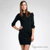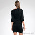 Мягкий приятный телу трикотаж средней плотности. Прилегающий по фигуре крой. Рукав-реглан длиной 3/4, манжета с продетой резинкой. Округлый широкий вырез горловины. Низ изделия посажен на широкую манжету-резинку. На линии бедер в шлевки продет широкий пояс.