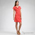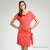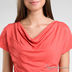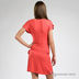Платье выполнено из тонкой трикотажной ткани, приталенный силуэт. Короткий цельнокроеный рукав. Вырез горловины с напуском, ложится мягкими складками. Полочка декорирована защипами с прострочкой. На бедрах поясок, продетый в шлевки.