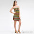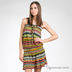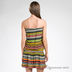 Трикотажное платье свободного покроя. Верх лифа и заниженная талия посажены на многорядные резинки. По центру полочки пришиты лямки, завязывающиеся на шее.