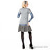 Стильное трикотажное платье с длинными рукавами и круглым вырезом горловины. Эффект "двойки". Вязаная юбка платья с посадкой на бедрах образует мягкие складки.