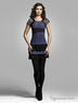 Нарядное трикотажное платье с короткими рукавами и фигурным вырезом горловины. Платье декорировано атласными розочками. Подол украшен шифоновыми вставками.