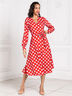 Платье на запах женское в горох из принтованного тканного полотна от бренда Barmariska. Приталенный силуэт. Длинные рукава с широкими манжетами. Детали: на манжетах рукавов три пуговицы на ножках под жемчуг, два пояса, пристроченные к полочкам, брендированный металлический шильдик на полочке справа. Цвет изделия может незначительно отличаться от цвета изделия на фото. Допустимое отклонение от размерной сетки +/- 1 сантиметр.
