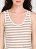 Детали: округлый вырез горловины и проймы дополнены трикотажными лентами