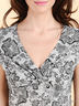 Детали: v-образный вырез горловины с запахом, расклешеный крой низа изделия