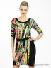 Детали: круглый вырез, рукава 3/4, талия подчеркнута поясом-резинкой