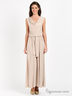 Детали: ворот-качели, широкие бретели, открытая спинка дополнена лентой, фиксирующей бретели, отрезная юбка, в шлевки продет шелковистый широкий пояс.