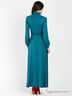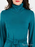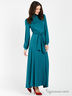 Детали: воротник "хомут", длинные рукава с трикотажными манжетами, талия подчеркнута широкой лентой в тон изделию