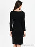 Мягкое и теплое платье прилегающего силуэта выполнено из джерси средней плотности. Вырез горловины-лодочка декорирован оригинальной драпировкой, длинный прямой рукав. Линия талии подчеркнута эффектной драпировкой в виде мелких складок. Отличный вариант как для офиса, так и для вечернего отдыха!