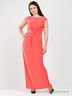 Великолепное длинное платье из тонкого, эластичного материала. Широкий округлый вырез горловины. На полочке крупная драпировка. Отрезная длинная юбка.
