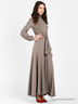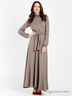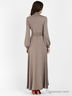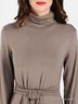 Детали: воротник "хомут", длинные рукава с трикотажными манжетами, талия подчеркнута широкой лентой в тон изделию