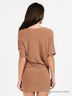 Детали: округлый вырез горловины, цельнокроеный рукав присборен на манжету, косой крой изделия