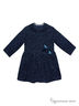 Скрытая молния на спинке, воротник и вставка на талии из вельвета в мелкую крапинку, защипы от талии, декоративный элемент "цветочек" + атласный бантик.