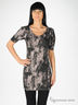 Короткое трикотажное платье. Короткие рукава, присборенные по шву. Глубокая кругдая горловина.