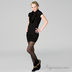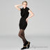 Стильное трикотажное платье-футляр. У платья короткие рукава и воротник-хомут.