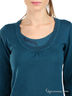 Детали: округлый вырез горловины дополнен трикотажной резинкой в мелкий рубчик, линия талии подчеркнута вязкой в рубчик, низ изделия на трикотажной резинке в рубчик