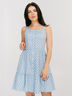 Сарафан на пуговицах. Без рукава. Юбка клеш с воланом. На спине резинка. Боковые карманы.