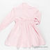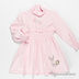Платье с длинным рукавом, расклешенной юбкой и воротом-стойкой застегивается на три пуговицы на спинке. Манжеты и пояс обозначены многорядными резинками. Изделие украшено аппликациями, вышивкой, нашивкой и декоративные пуговичками.