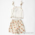 Детали: топ на тонких бретелях, оригинальная отделка полочки, с пуговицами, стильная рюша так же из отделочной ткани, шорты на резинке, так же отделка рюшей, два прорезных кармашка