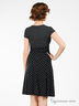 Детали: округлый вырез горловины, короткие рукава крылышки, оригинальная кокетка со шлевками для тонкого пояска, расклешенная юбка с подкладкой.