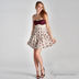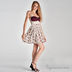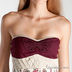Платье с открытыми плечами без брителей. Лиф из хлопка темно-бордового цвета, спереди аппликация в форме банта. Верх отделан контрастной кулиской с резинкой для фиксации. На спинке застежка молния. Юбка двуслойная из хлопка с мелким цветочным принтом.