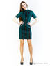Трикотажное платье с атласными вставками т.синего либо бутылочного цвета, с застежкой-молнией по центру платья и подвесками-ромбы. Рукав на манжете, воротник стойка. Длина изделия около 93 см.
