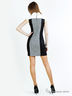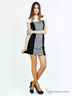 Комбинированное платье с рубашечным воротником и коротким рукавом-фонариком. По линии кокетки украшено бисером и камнями. Спинка на молнии. Длина изделия около 91 см.