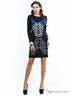 Платье черного цвета с вышивкой трех оттенков спереди изделия. Длина изделия около 97 см. Модель с длинными рукавами и округлым вырезом горловины.