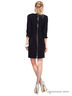 Платье прямого полуприталенного покроя, выполнено из костюмной ткани "гальяно". Рукав 3/4, по спинке вшита золотистая молния. Отличный вариант для Вашего гардероба.