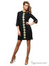 Платье свободного силуэта, рукав 3/4, перед декорирован итальянским металлизированным кружевом-вышивкой, воротник и рукава украшены золотистым кантом в цвет кружева. Платье выполнено из итальянского трикотажа «Джерси».