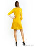 Двубортное платье на черных больших и маленьких пуговицах. Изделие выполнено в горчичном цвете с потайными карманами в шве. Модель с длинными рукавами и округлым вырезом горловины. Отличный вариант на каждый день. Длина изделия около 96 см.