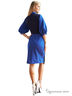 Модель из плотного эластичного джерси. Великолепное изделие на каждый день, в бюро или для похода на вечеринку. Приталенный покрой. По платью нашиты модные темно-синие вставки. Рукав - буф длиной 3/4.