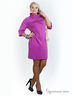 Платье в сиреневом цвете с воротником-"шалька", рукавом-"реглан" и боковыми карманами в шве. На полочке платье украшает серебристая брошь. Длина изделия около 93 см.