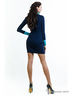 Трикотажное платье темно-синего цвета с бирюзовой вставкой по полочке. Горло — «хомут». С прошитыми складами по груди. Отличный вариант на каждый день.