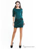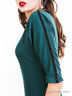 Платье темно-зеленого цвета по фигуре, изделие дополнено карманами «обманками». На рукавах вставки — лампасы. Отличный вариант на каждый день.
