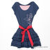 Платье для девочки. Округлый вырез горловины, рукава "фонарики" на резинке, талия подчеркнута поясом, многослойная юбка, полочка изделия украшена набивным принтом, нашивками и стразами.