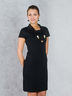 Классическое платье прилегающего силуэта. Короткие рукава. Воротник-стоечка.