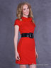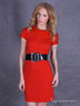 Классическое платье прилегающего кроя. Короткие рукава. Воротник-стоечка. Талия подчеркнута широким поясом.