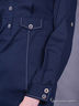 Платье с застежкой на пуговицах до талии. Отложной воротник. Хлястики придерживают отворот на рукавах.